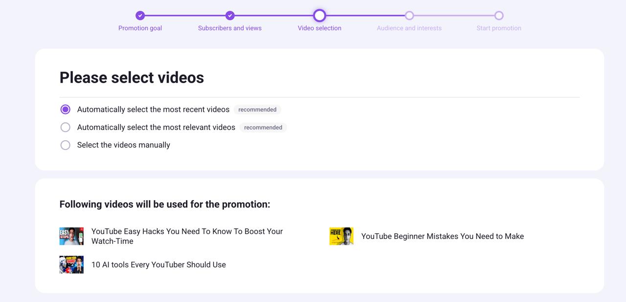 To ensure your videos reach highly interested viewers who are likely to stay with your channel long-term, we recommend starting with the “More Engagement” package.