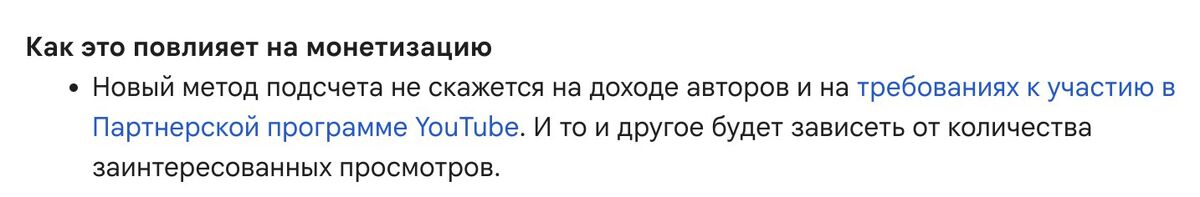 И это не шутка: монетизация и выполнение условий для подключения к Партнёрской программе считается по заинтересованным просмотрам, а не общему их числу.