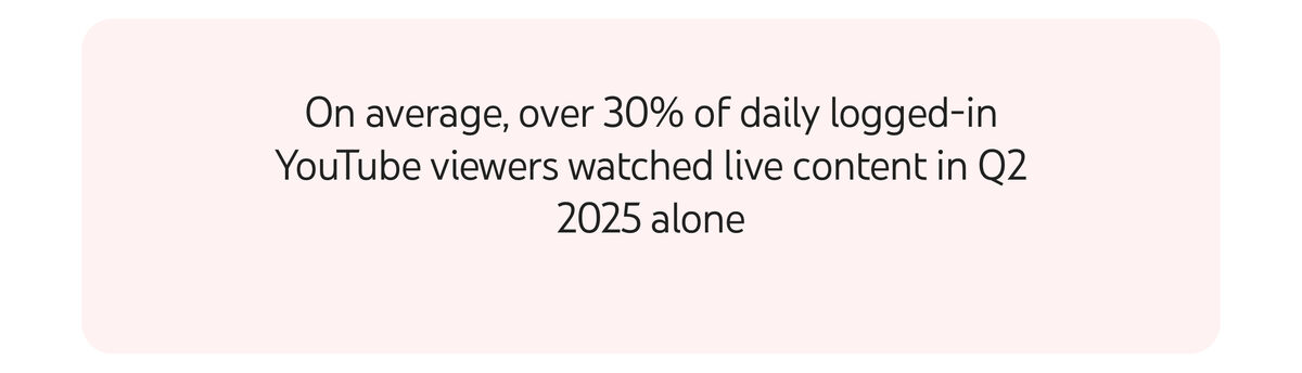 Оказывается Ютуб выяснил, что в среднем более 30% зрителей ежедневно смотрели прямые эфиры только за второй квартал 2025 года.